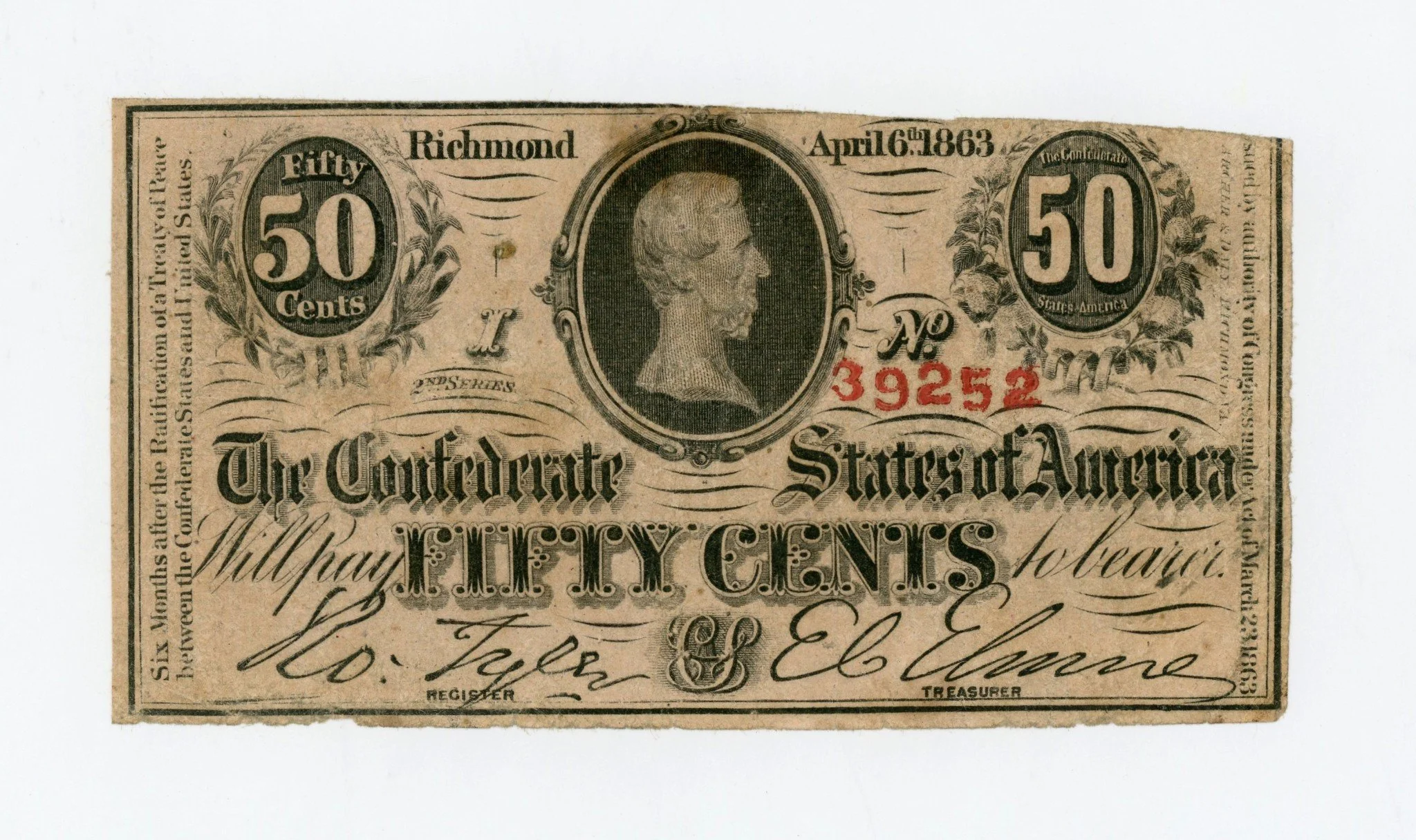 Categories: All Certified Notes 1861 1862 1863 1864 All Certified Notes 1861 1862 1863 1864 1863 T-40 $100 The Confederate States of America Note - CIVIL WAR Era w/ TRAIN $129.00 1863 T-63 50c The Confederate States of America Note - CIVIL WAR Era $45.00 1861 T-18 $20 The Confederate States of America Note - CIVIL WAR Era $69.00 1861 T-28 $10 The Confederate States of America Note - CIVIL WAR Era $189.00 1861 T-28 $10 The Confederate States of America Note - CIVIL WAR Era $169.00